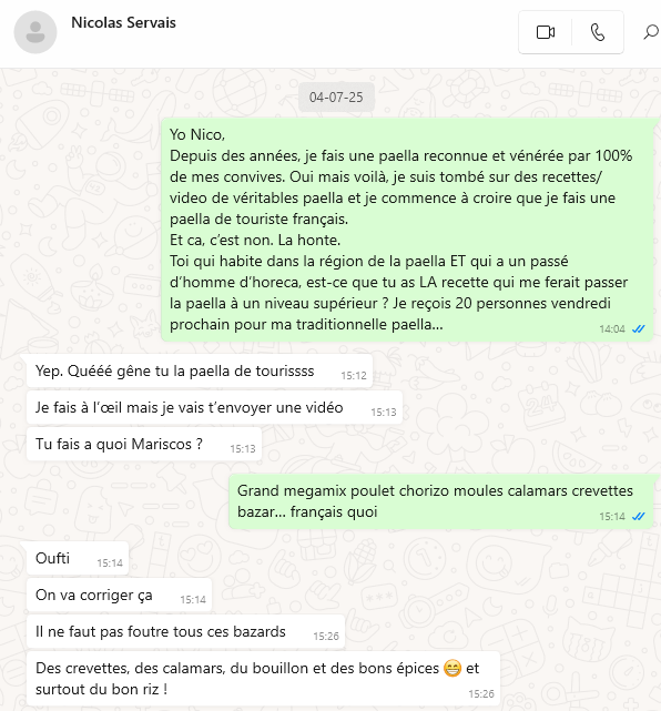 C’est la recette de Nico qui vit à Valence et qui se fout de la tronche de ma paëlla.