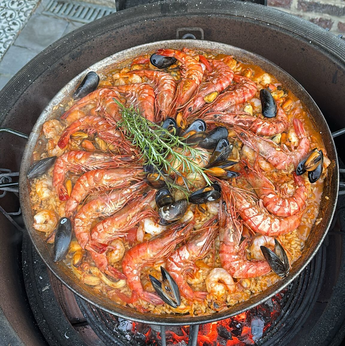 La classe ultime : Le riz au fond de la paellera a une petite croûte (le socarrat). Les Valenciens jugent ta paella à ça : si tu arrives à faire ta paella croûtée dans le fond sans que ce soit cramé, elle est réussie. C’est entre autres pour cela qu’on ne mélange pas une fois qu’on a mis le bouillon.